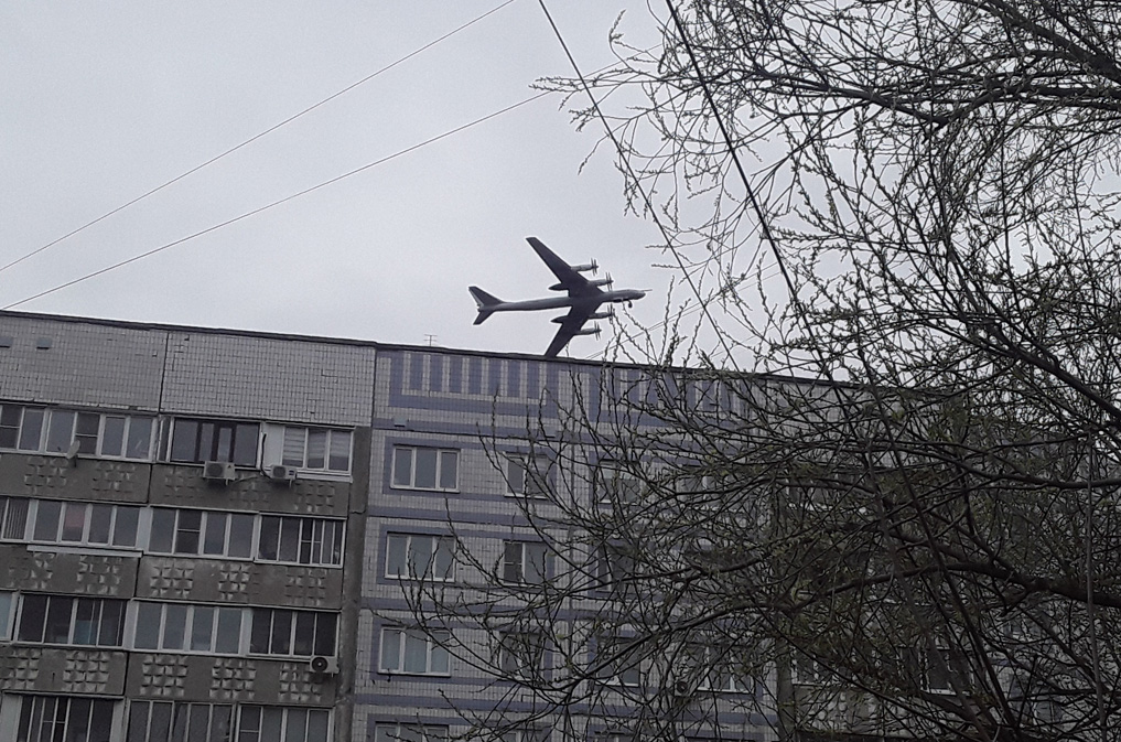 Дальний бомбардировщик Ту-95 над 10-этажным домом в Канищеве