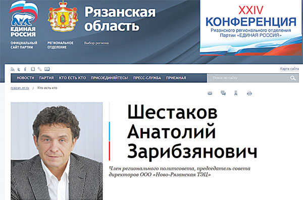 ШЕСТАКОВ Анатолий Зарибзянович – председатель совета директоров ООО «Ново-Рязанская ТЭЦ», член регионального политсовета «Единой России», обладает 76% голосов в ЗАО «Дружба» (бывшая одноименная база отдыха близ санатория «Сосновый бор», ныне – стройплощадка жилищного комплекса с максимальным коэффициентом застройки земельного участка 60%). Анатолий Зарибзянович добился-таки перевода этой рекреационной территории в жилую зону и уверенно заявляет о вводе в эксплуатацию первой очереди из 119 квартир до 23 августа 2015г.