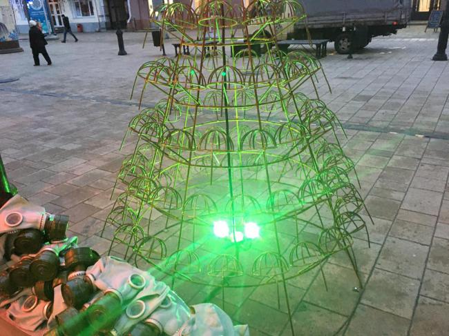Поводом для экстренного приезда «коммунальной спецслужбы» послужила установленная в первой половине дня елка возле входа в кафе-бар Bunker.