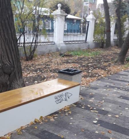 Неустановленные личности нанесли «элементы оформления» на новенькие скамейки.