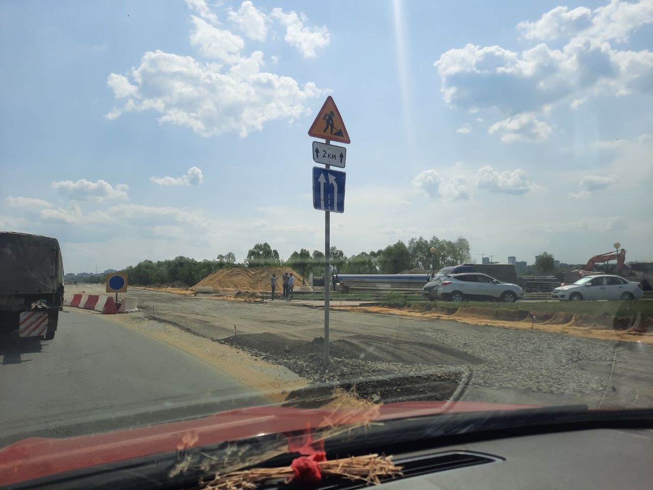 Пока одни полосы Северной окружной забиты машинами, другие загорают под солнцем в гордом одиночестве. Рабочих нет от слова «почти»: днем 18 мая за всю дорогу нам попалась лишь троица в пиджаках, да улыбающийся азиат. В остальном грандиозный ремонт – судя по голым многокилометровым отрезкам – существует только в головах пиарщиков областного минтранса.
