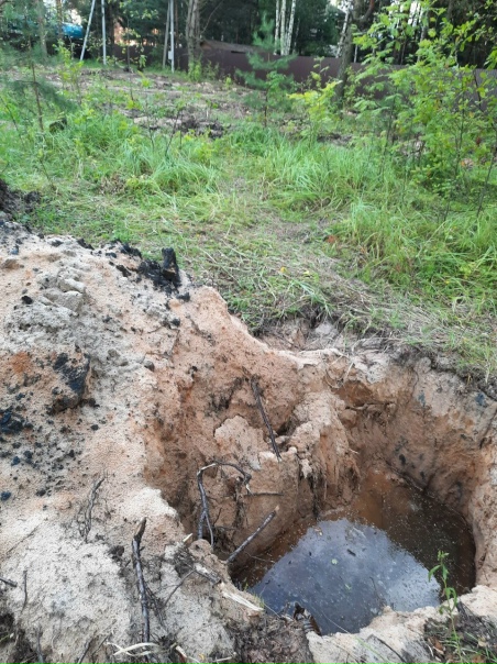 Здоровые деревья (это видно по срезу на пне) были порублены, складированы и вывезены еще на прошлой неделе. Остались мусор, ямы по всему участку от выкорчеванных пней, в некоторых тухнет дождевая вода.
