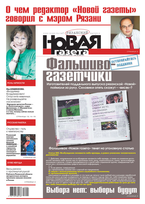 Анонс рязанского выпуска «Новой газеты» от 22 августа