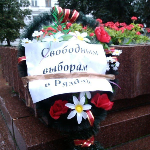 Участники акции принесли траурный венок с надписью "Свободным выборам в Рязани".