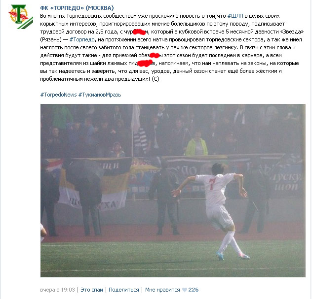 В интернете со страниц болельщиков "Торпедо" посыпались угрозы в адрес футболиста.