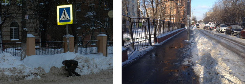 Слева на наших снимках представлено состояние рязанских улиц, справа - столичных. Фотографии сделаны 21-22 января. В Рязани - в Шлаковом, в Москве - в Восточном административном округе.